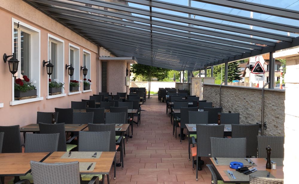 Ein kleiner Einblick in unser Restaurant und Saal im Keller und der schönen Außenterrassen mit Überdachung